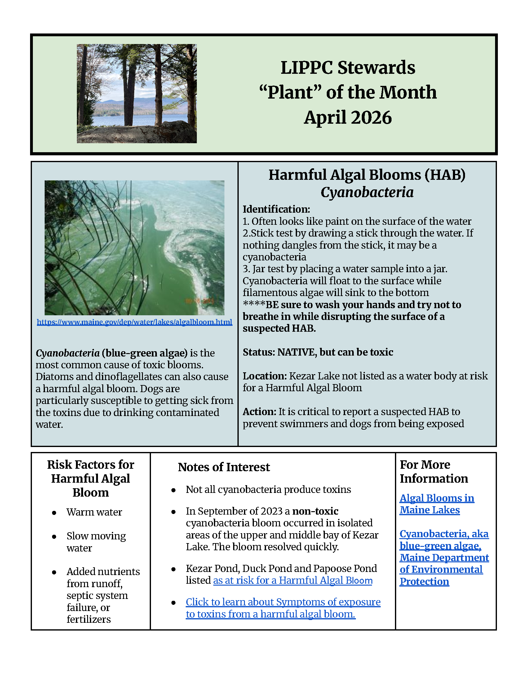 “Prevent invasive aquatic plants from being introduced into the water bodies of the Town of Lovell and the Kezar Lake, Kezar River, and Cold River watersheds; locate and mark any plants that have been discovered within the watershed; and take aggressive measures to eradicate any invasive aquatic plants by working closely with the State of Maine rapid response team.”